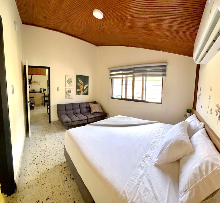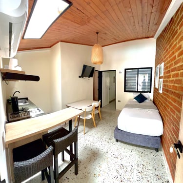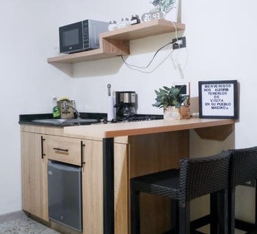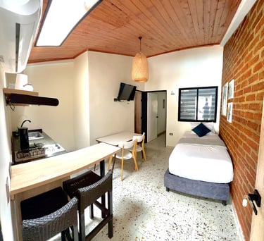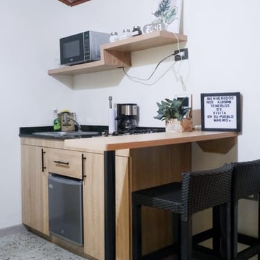 En Magiko Suites Roldanillo, cada apartamento está equipado con todo lo esencial para que tu estadía sea cómoda y sin preocupaciones. Desde una cocina completamente dotada —con nevera, microondas y todo lo necesario para que cocines a tu ritmo— hasta un TV inteligente para que disfrutes tus series favoritas al final del día.