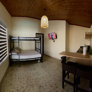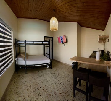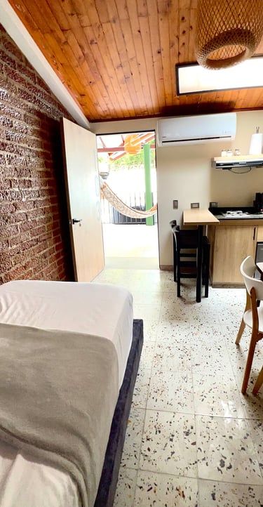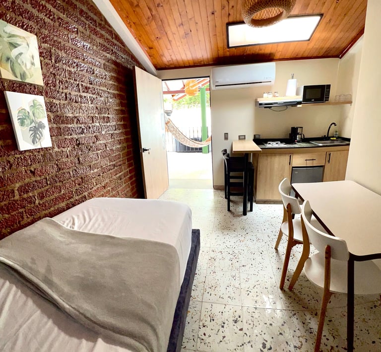 Un acogedor espacio para 3 personas. Contiene una pequeña cocina dotada, baño y aire acondicionado.
