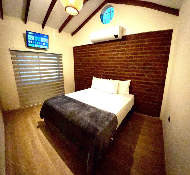 También encontrarás aire acondicionado para que siempre estés a gusto, un baño privado moderno, plancha de ropa y secador de pelo para que te sientas como en casa.
